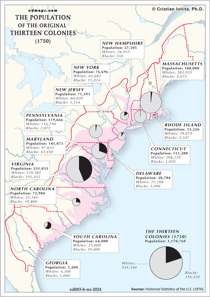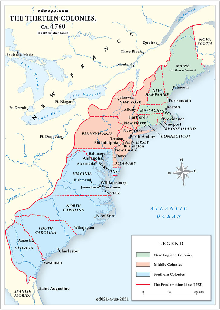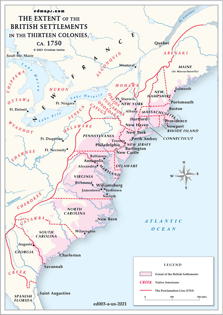 The Extent of the British Settlements in the Thirteen Colonies, ca. 1750